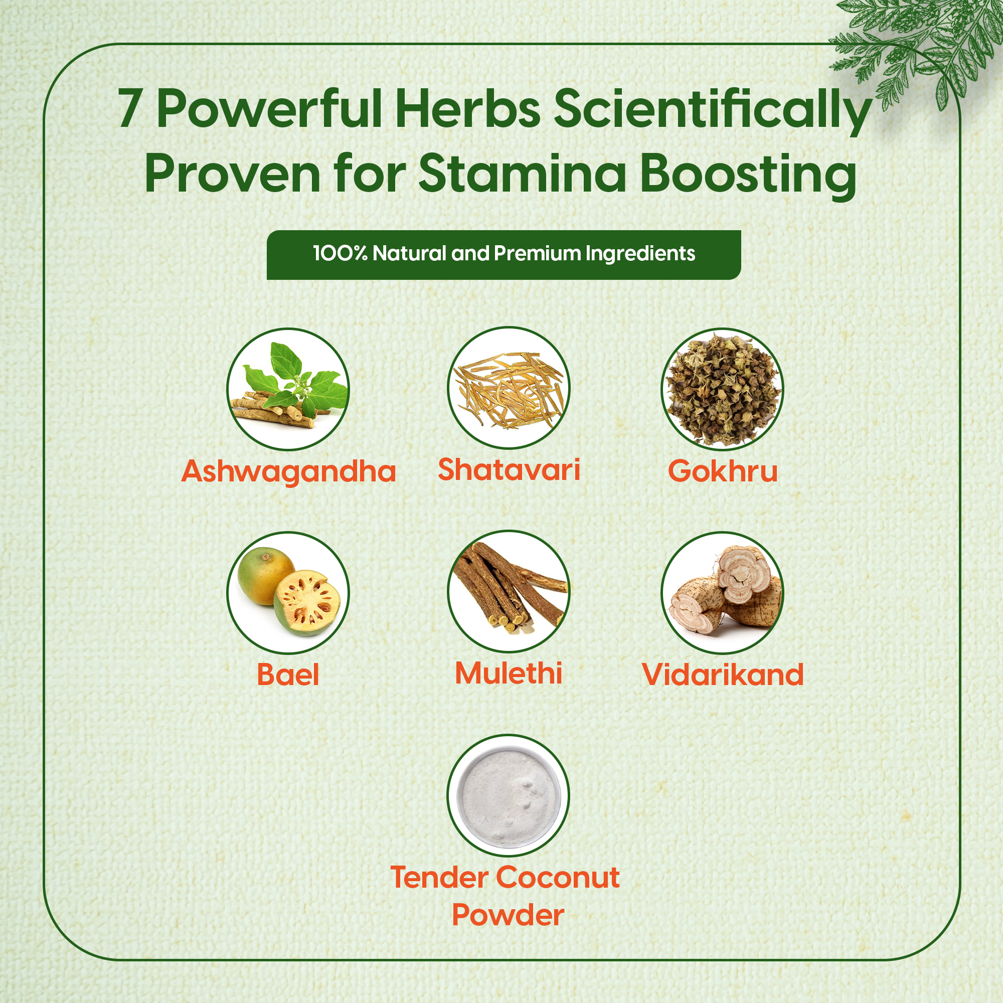 Goodness of Tender Coconut water + Ayurveda Herbs for energy and stamina boosting: Tender Coconut Water enriched with 6 powerful Herbs known for stamina building