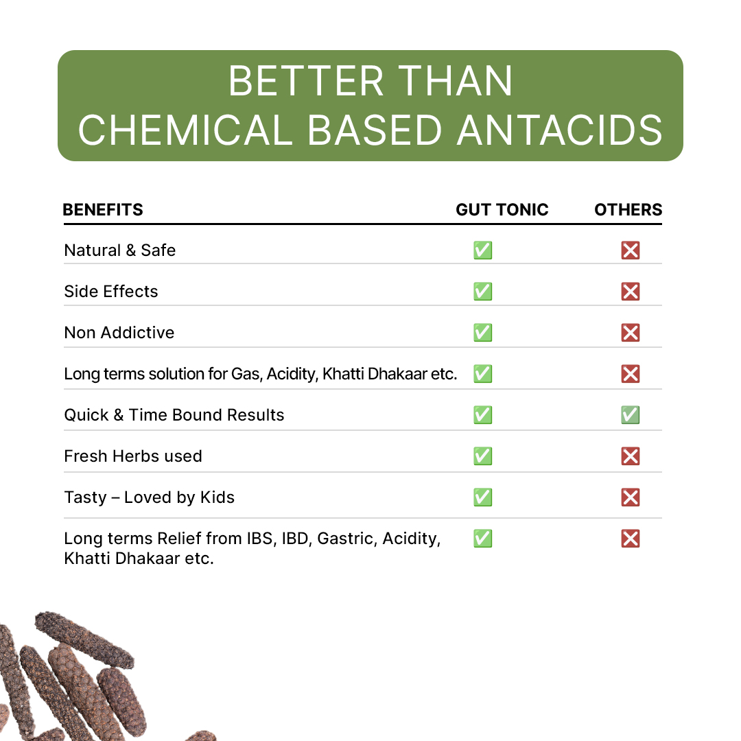 2.GUT Tonic (Combination of 11+ herbs): To keep your GUT Strong & Healthy that ultimately helps in chronic gastric, Acidity & Indigestion issues. Total 1 Unit (250 ml)