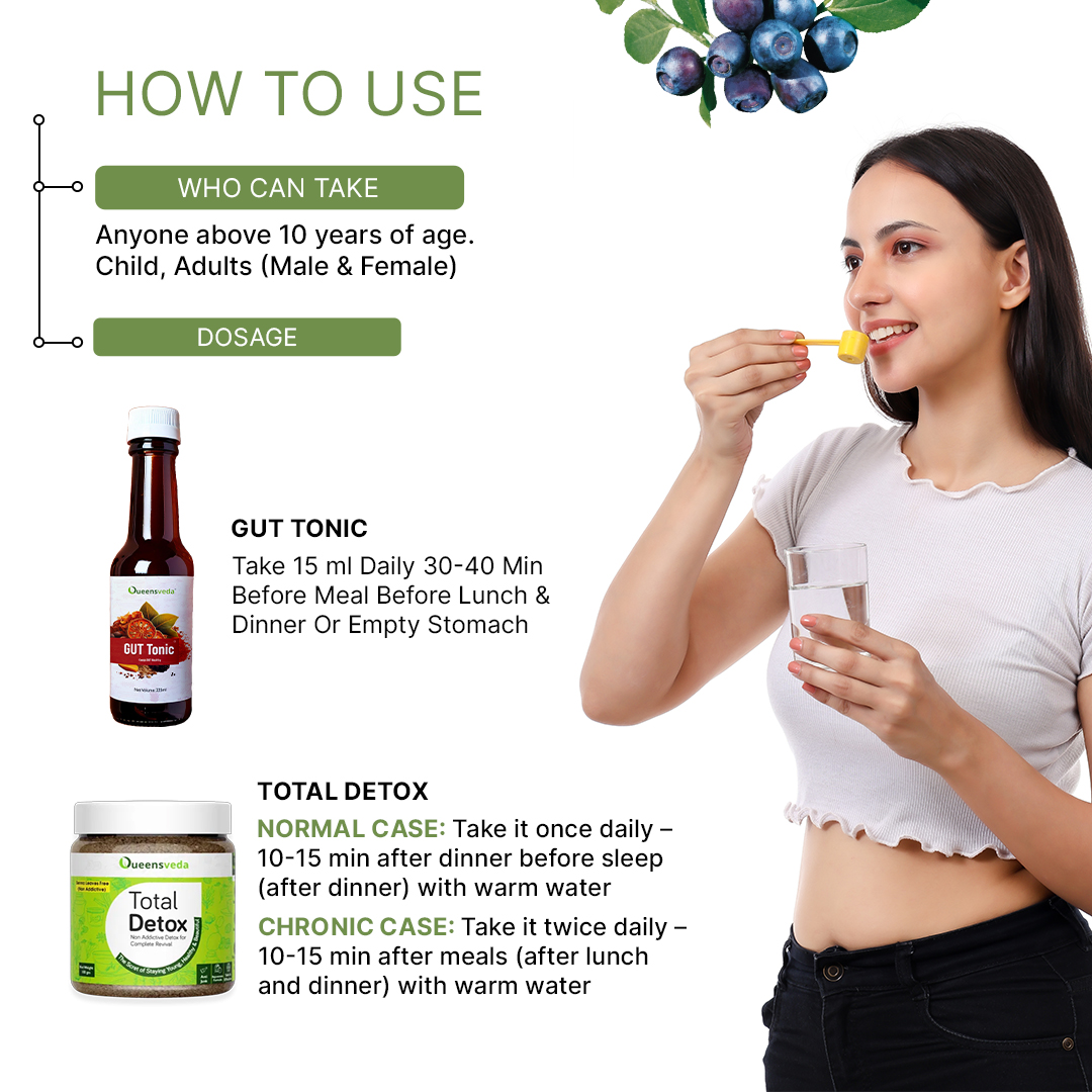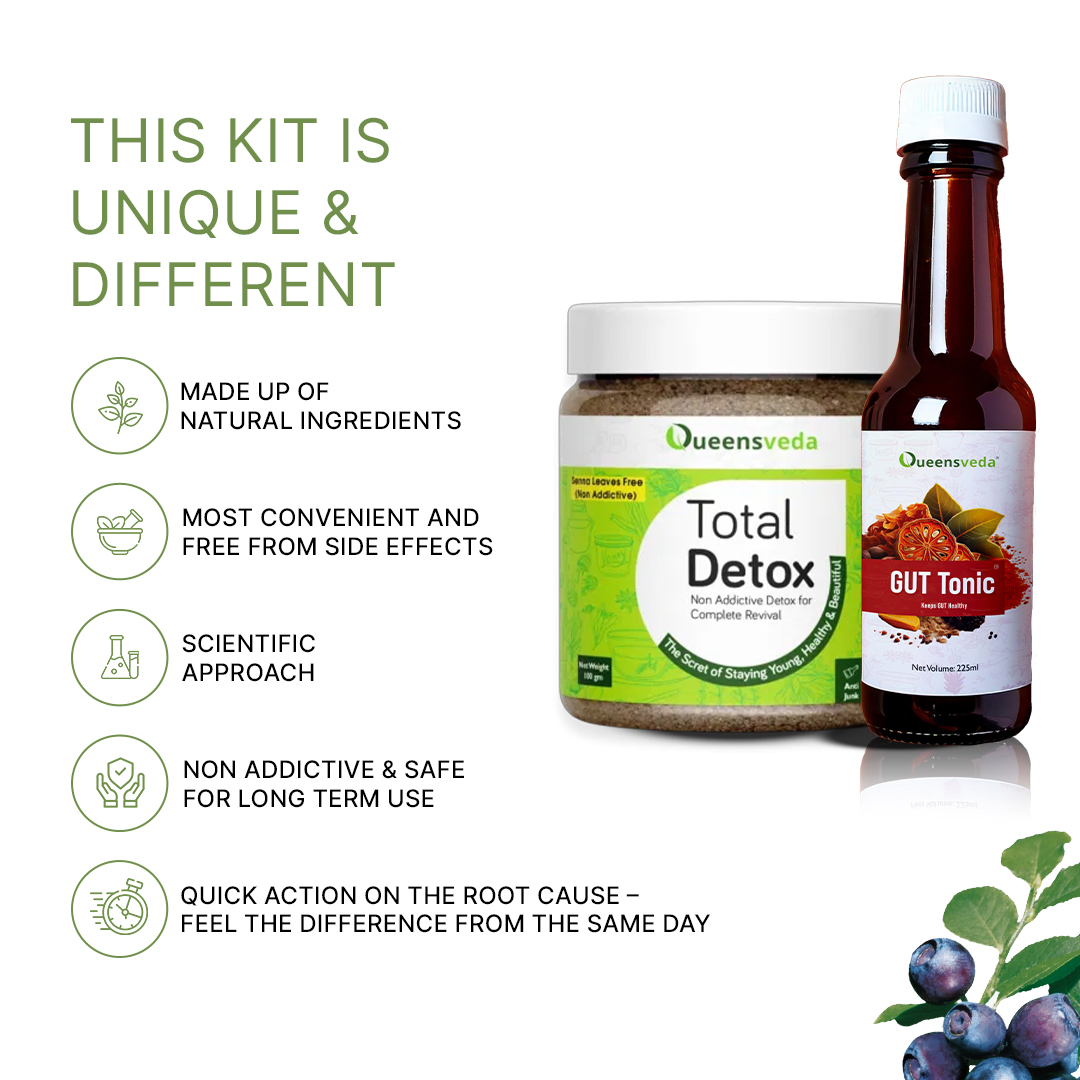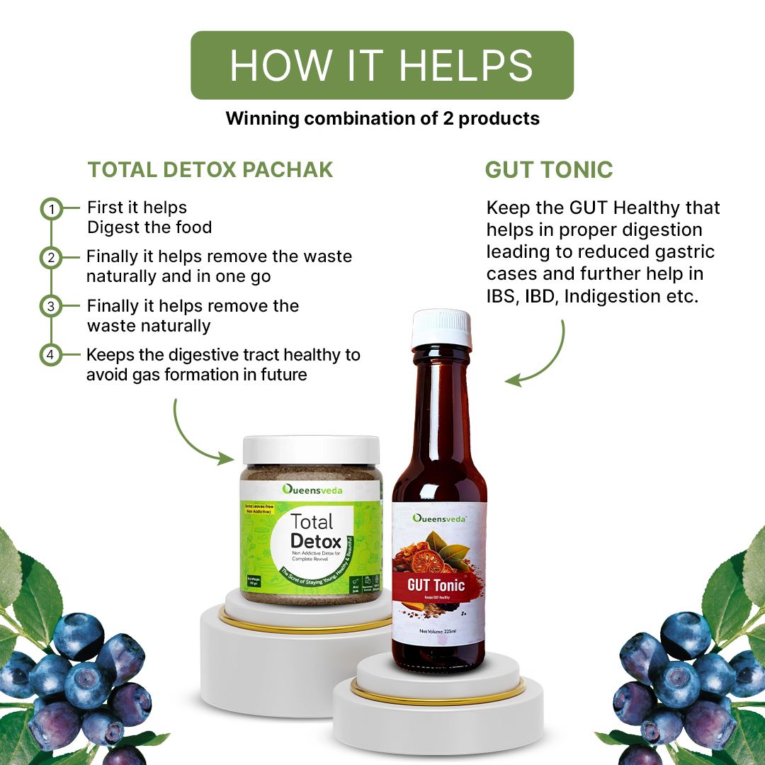 GUT Detox Kit – Ayurveda Kit for Healthy GUT (1 Total Detox + 1 Gut Tonic) | Helps in IBD, IBS, Indigestion & Constipation-15 Days Pack